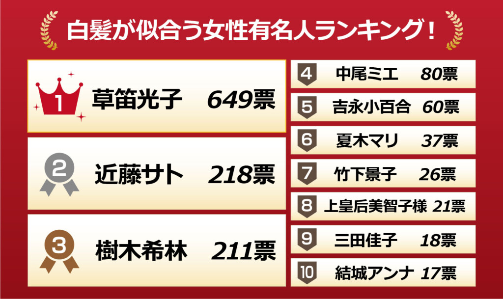 では、白髪が似合う“女性有名人”では誰が思い浮かぶでしょうか。