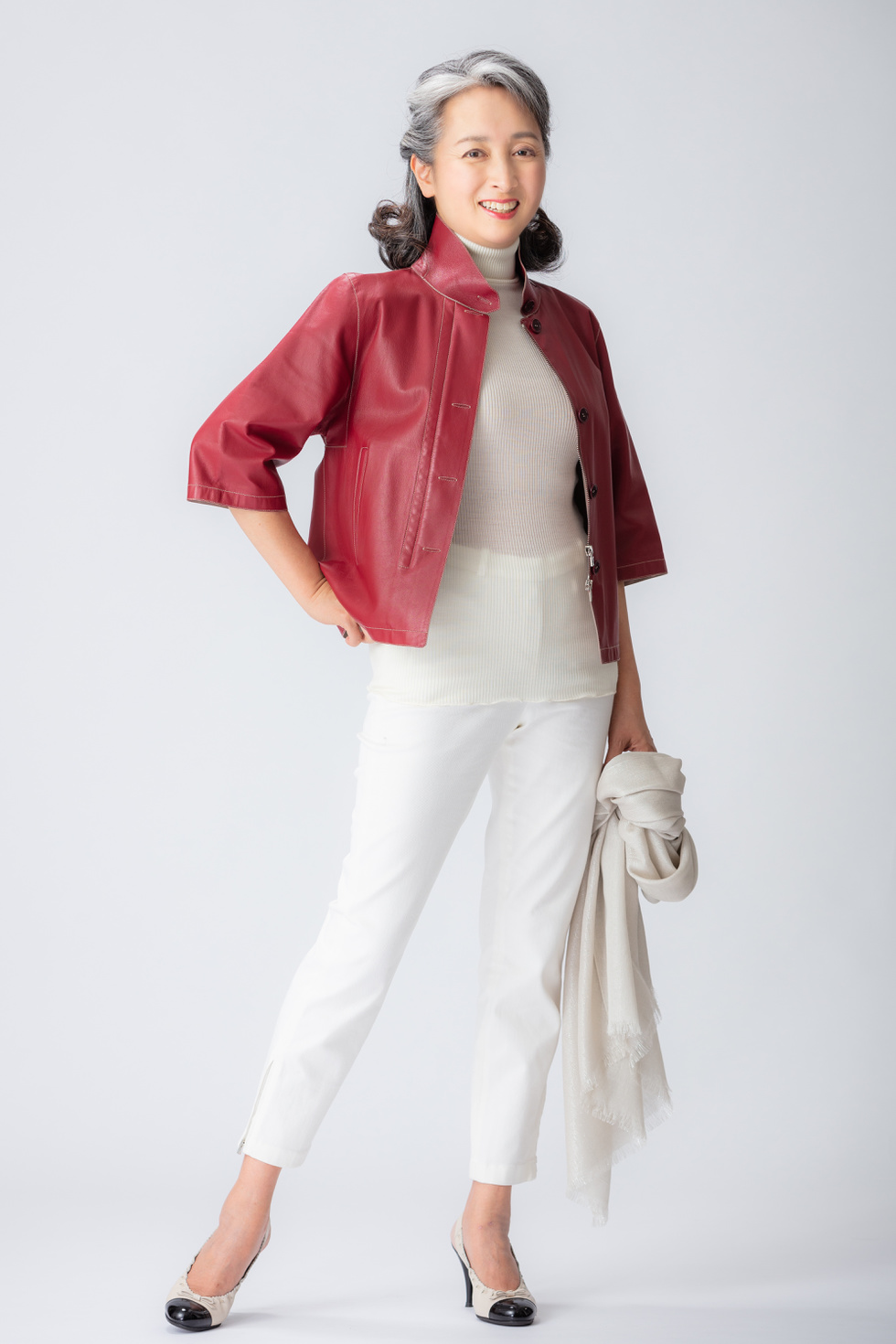 ・上品でエレガントなイメージと白髪がよくマッチしている。