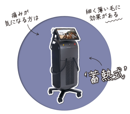 レジーナクリニックでは、熱破壊式は「ジェントルシリーズ」、蓄熱式は「ソプラノシリーズ」の脱毛機を使用。