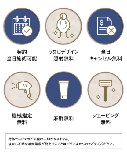 万が一肌トラブルが起きた時も、処置料金が0円となるのは嬉しいですよね。