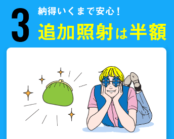 万が一仕上がりに満足いかなかった場合に、一回ずつ半額以下で何度でも脱毛が受けられる特別制度なんです。