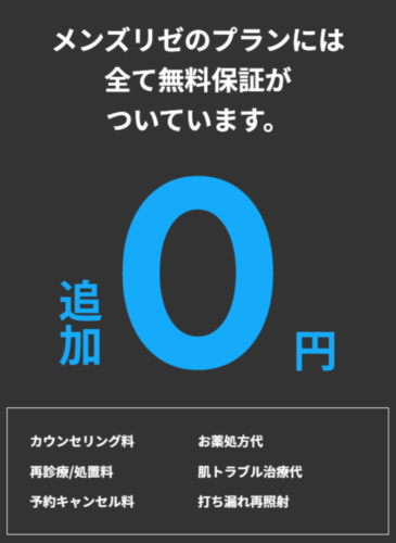 メンズリゼでは、”もしも”をフォローする独自システムが充実!