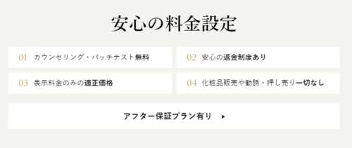 安心を保証する項目がたくさんあるので、初めて脱毛をお考えの方におすすめの脱毛サロンです!
