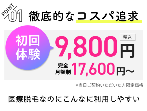 特に、全身脱毛が月額17,600円(税込)で受けられて、いつでも継続や解約が自由にできるためお財布にも優しい医療脱毛ですよね。